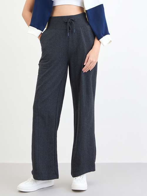 women solid high rise wide leg trouser