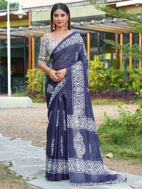 women printed casual wear saree with blouse
