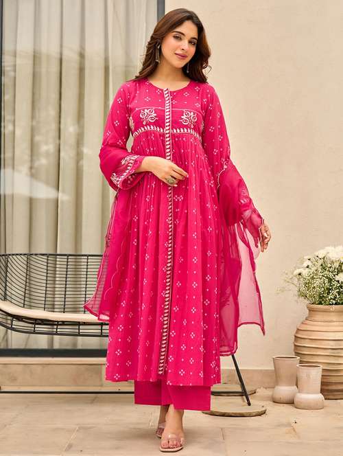 pink cotton kurta pant  set