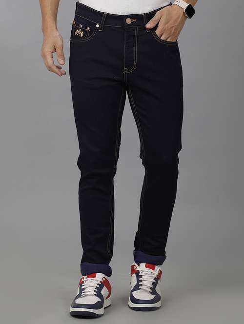 men blue plain jeans
