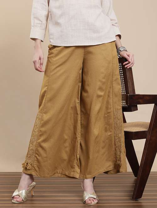 • Can’t do without fancy palazzos? Well, get them at LimeRoad from De Moza and in mustard colours.