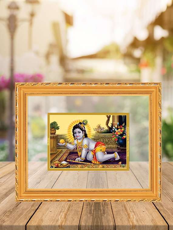 double glass wall hanging frame gold plated laddu gopal - 15325591 - Very Small Image - 1