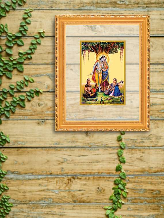 - » double glass wall hanging frame gold plated radha krishna with madhuwani