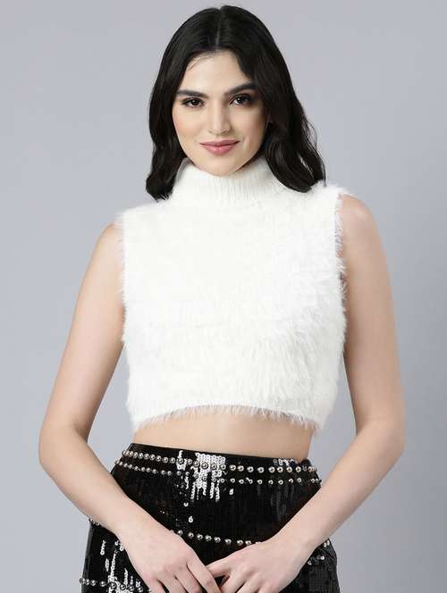 - Opt for this top made up of acrylic material and get it in a varied neck design.