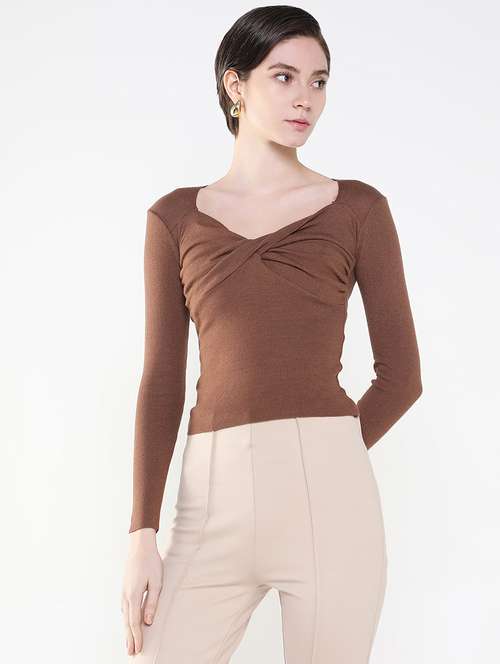 - » women brown solid regular top