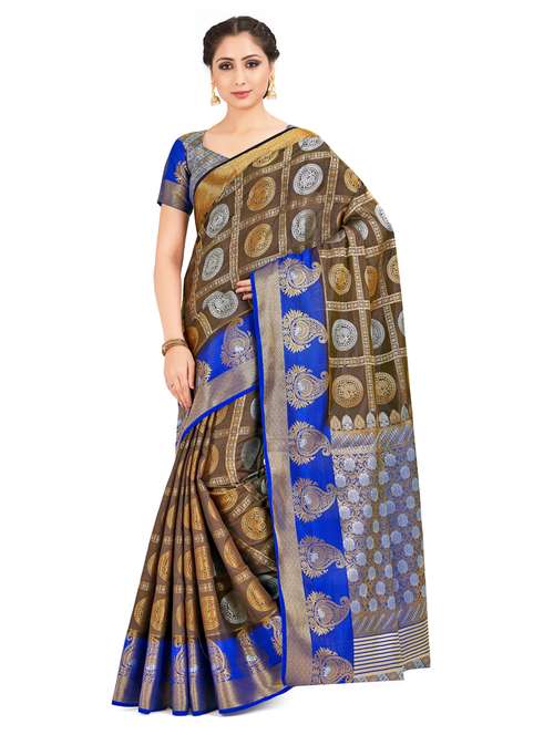 - » brown art silk kanjivaram saree with blouse