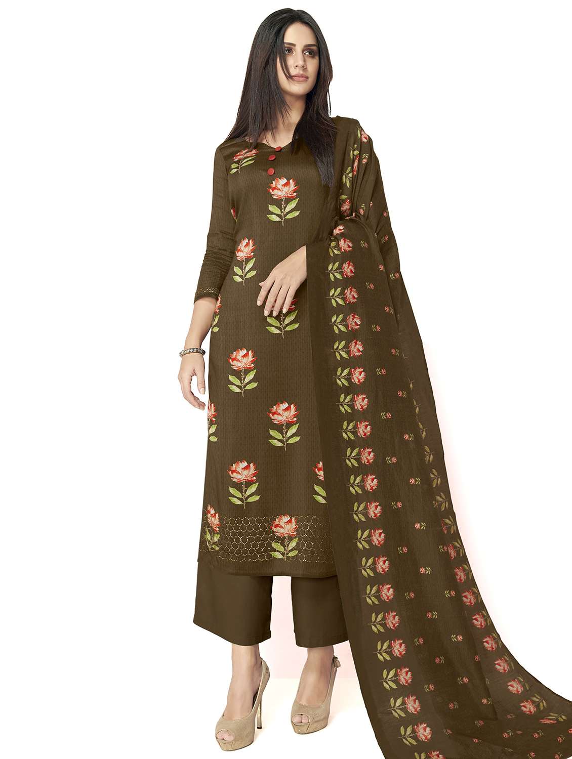 - Look ultra gorgeous in unstitched suits from Oomph! and grab these beautiful suits in brown colour.