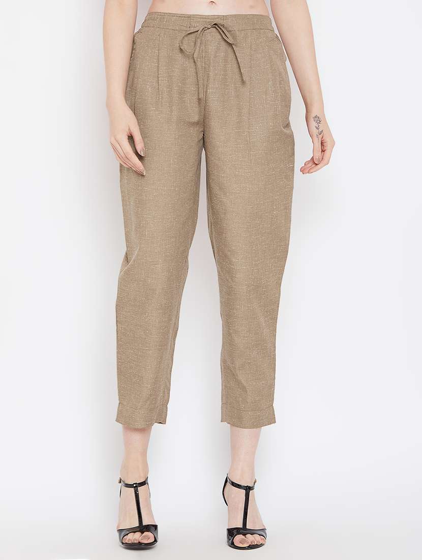 - » women beige solids calf length trousers