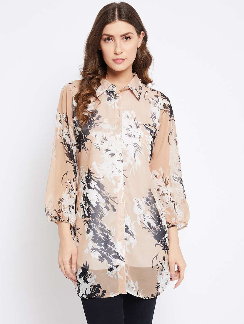 curved hem floral tunic - 18284630 - Very Small Image - 1