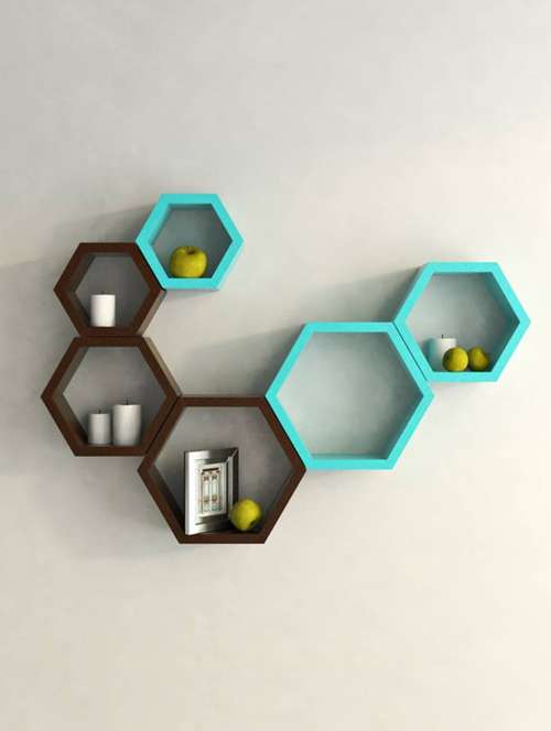 - » home deco hexagon shape storage wall shelves set of 6