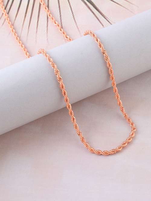 Elevate your style with this exquisite Rope design chain necklace crafted in pure copper. The 20-inch length and 3mm thickness strike the perfect balance between elegance and presence, while the 13-gram weight ensures comfortable wear. The distinctive rose-gold hue of copper adds a sophisticated touch to any outfit, making it suitable for both casual and festive occasions. This versatile unisex chain features a secure S-hook clasp and showcases meticulous craftsmanship in its twisted rope pattern. The chain maintains its lustrous appearance with proper care and is ideal for those who appreciate both style and traditional values. The classic rope design offers timeless appeal, making it a wonderful addition to your jewellery collection. Perfect for daily wear or special occasions, this copper chain necklace combines contemporary aesthetics with traditional charm. Note: While copper is traditionally associated with various properties, this product makes no specific health claims.