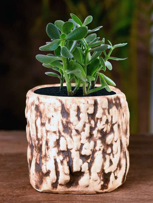- » ceramic wooden texture cylindrical table top planter