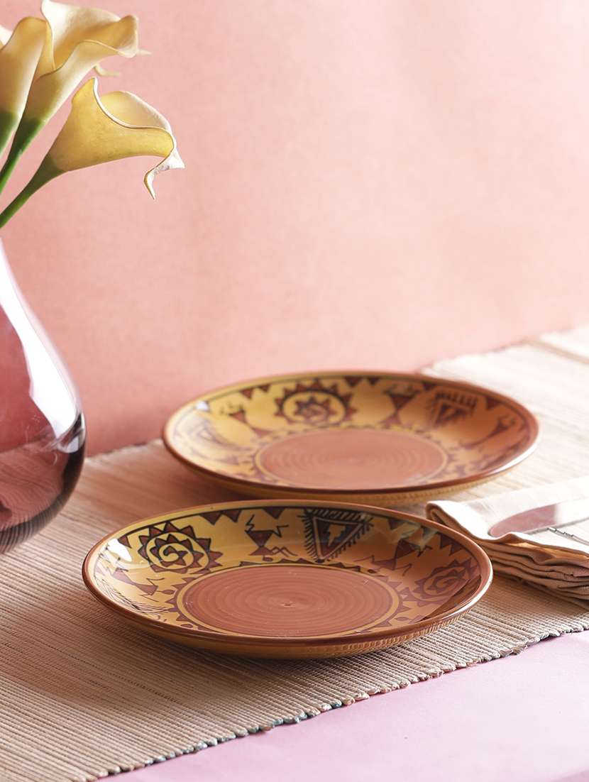 set of 4 brown warli quarter side plates