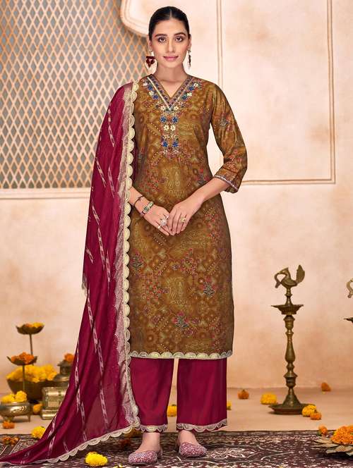 - Find gorgeous sets of ethnic wears in trending designs in brown colors suitable for festive wear of occasions.