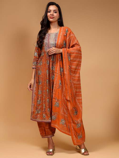 - » women brown floral kurta salwar set with dupatta