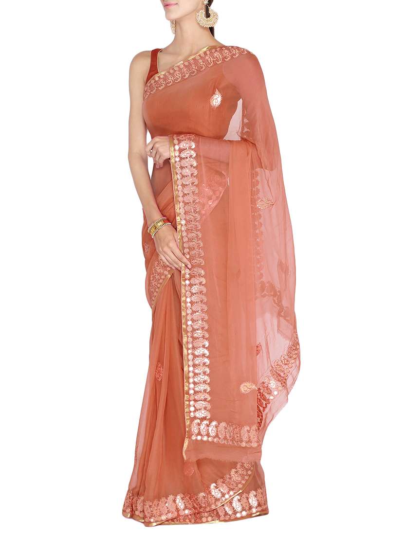 - » brown chiffon gota patti saree with blouse