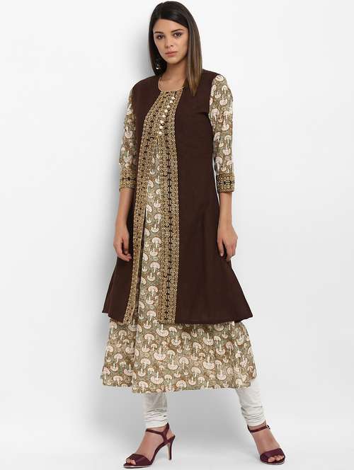 brown cotton layered kurta