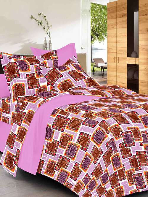 always plus brown check cotton bedsheet (1 double bedsheet with 2 pillow cover)with tc160