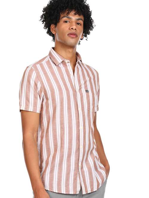 brown striped casual shirt