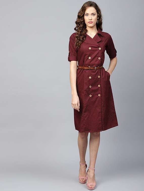 pindots belted coat dress