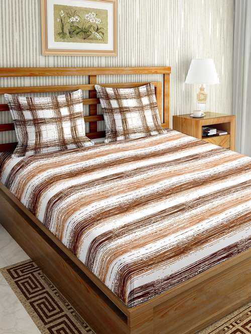 mysterious double bedsheet set king size 180 tc cotton brown colour - 17600364 - Very Small Image - 1