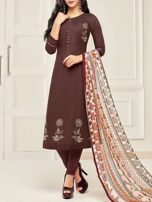 - » embroidered semi-stitched churidaar suit