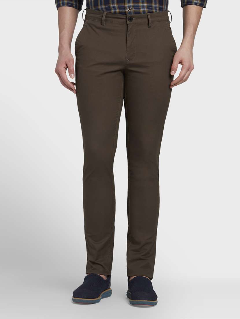 brown solid chinos casual trouser