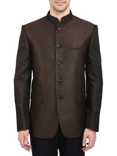 brown cotton bandhgalas casual blazer