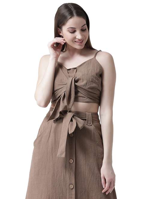 - » tie front solid crop top