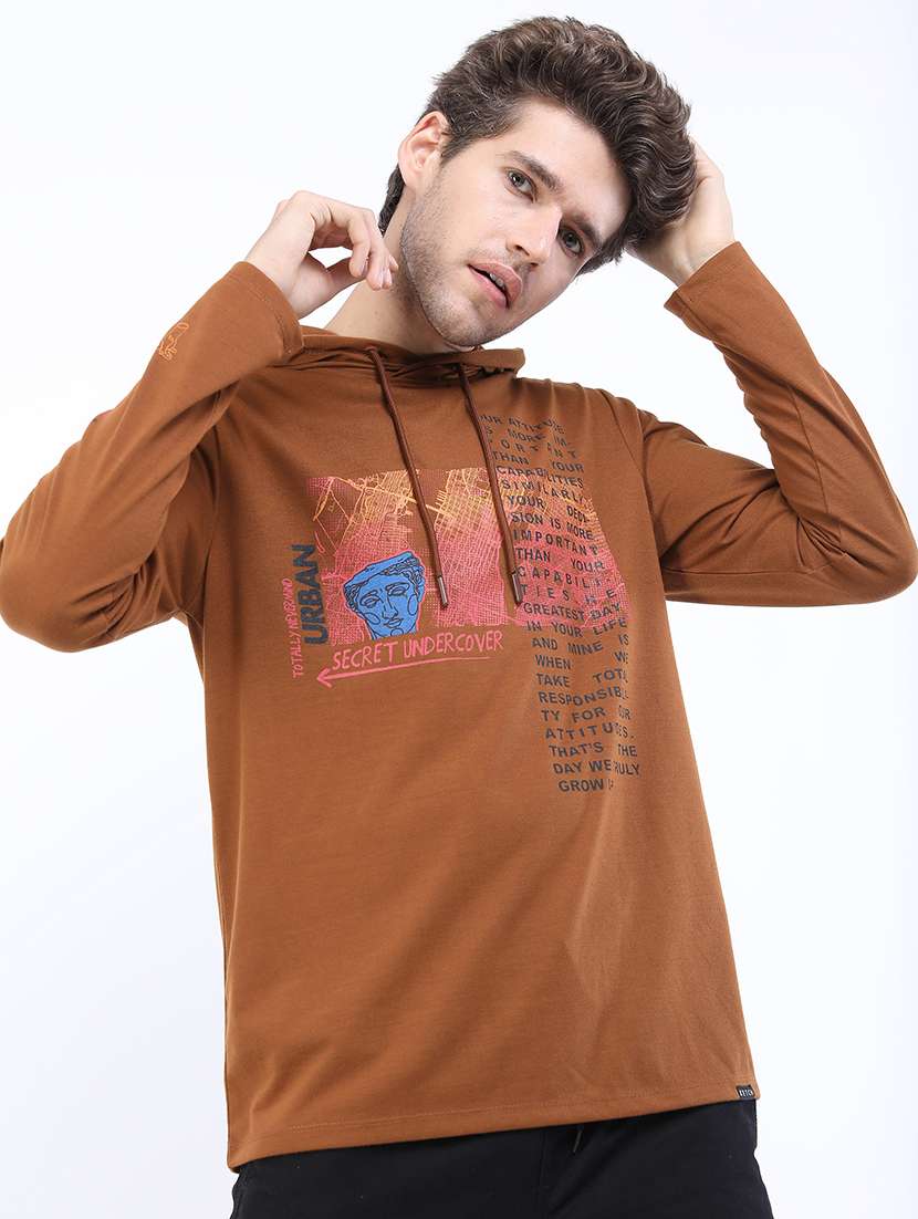 men hooded neck long sleeve t-shirt