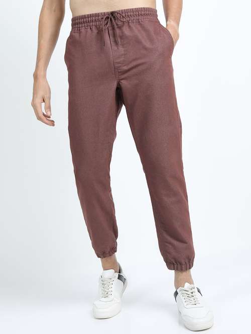 - Wish to complete the chic look on every occasion without compromising on comfort? Then do check out these elasticated joggers for casual wear occasions in brown hues.