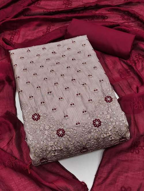 women solid with work embroidered unstitched suit set - 22016397 - Very Small Image - 1