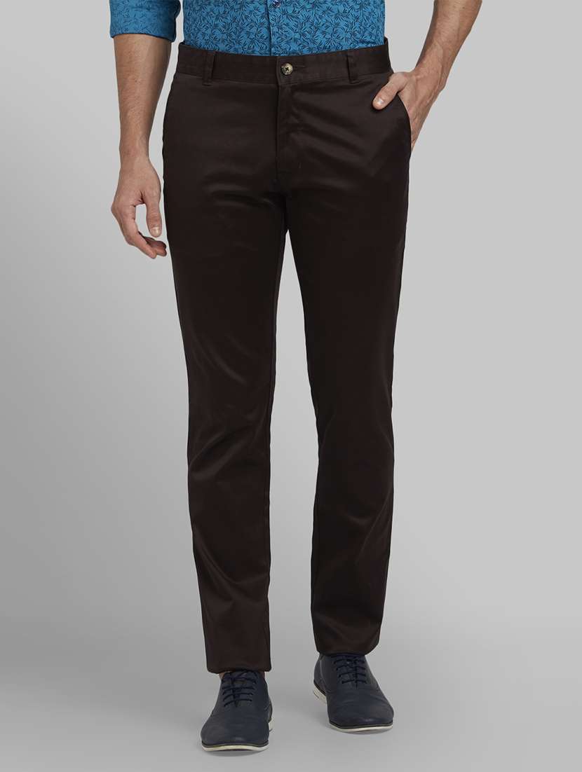 - » brown solid flat front casual trouser