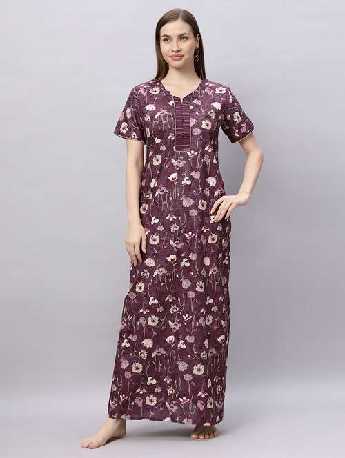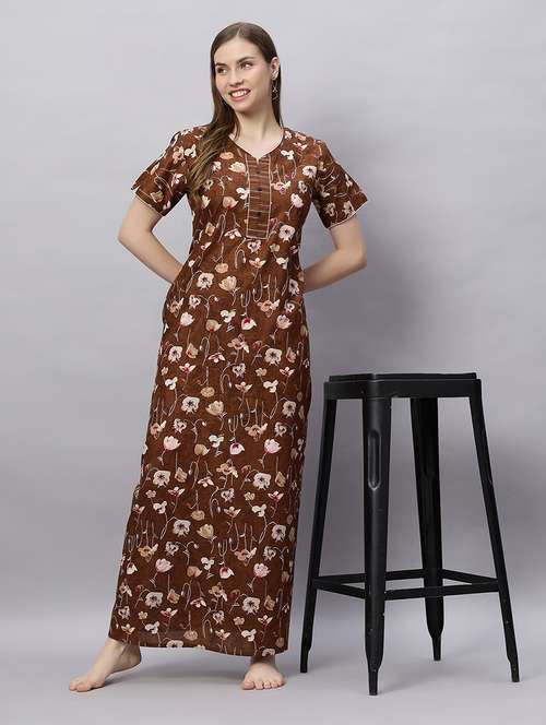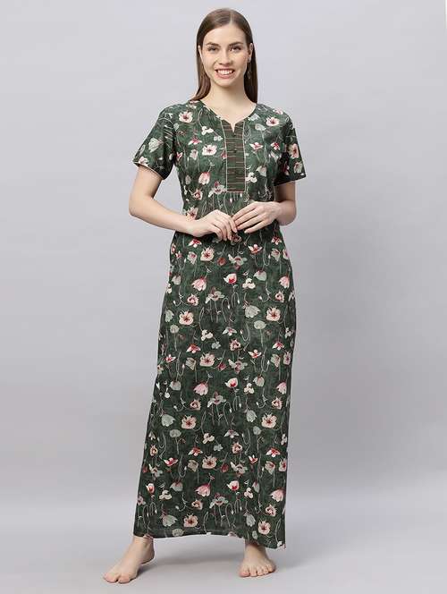 Quira Comfortable Women's Full Length Cotton Blend Half Sleeves Nighty, Soft and Elegant Sleepwear