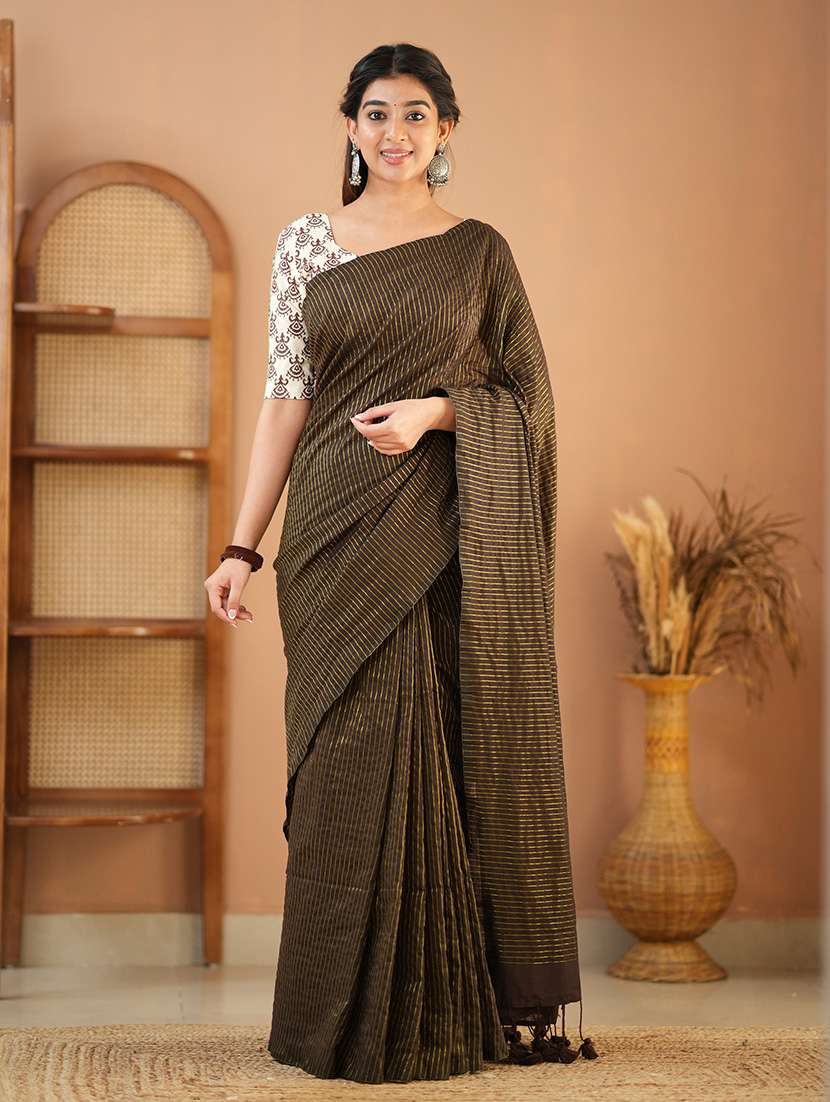 women striped handloom saree with blouse