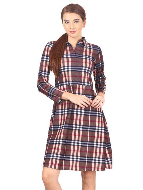 - » Shirt collar Checkered a-line dress