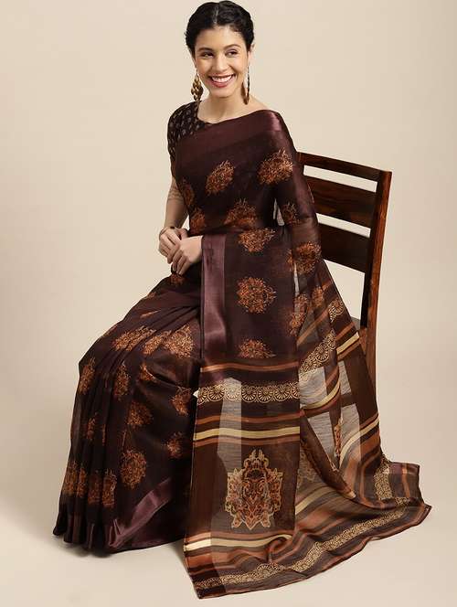 - » women's printed coffee brown colored saree