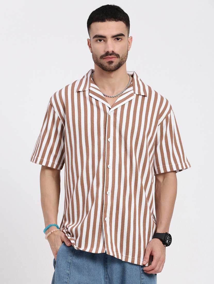 men vertical striped short sleeve casual shirt