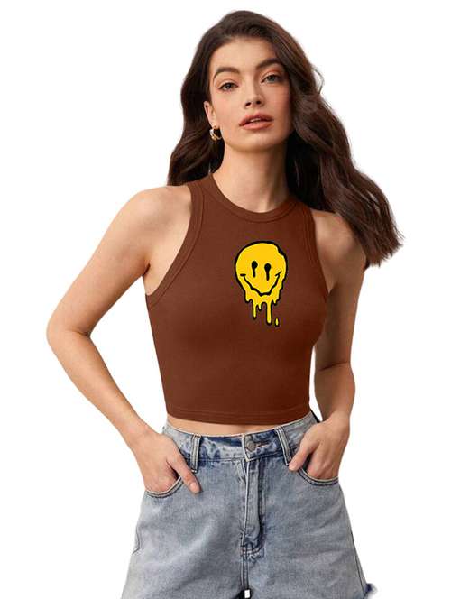 - » women printed sleeveless crop top