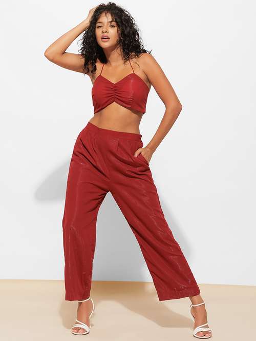 - » women brown cotton blend top and trouser co-ord set