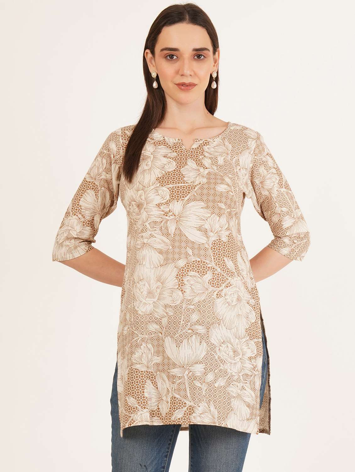 women floral printed three quarter sleeve straight kurti