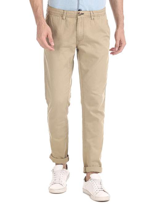 beige solid chinos