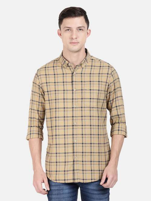 beige checkered casual shirt