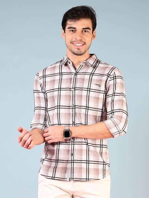 - » men checkered long sleeve regular fit casual shirt