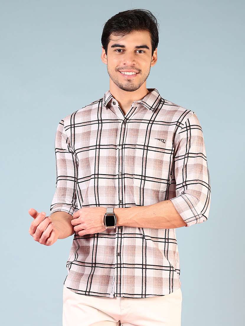 men checkered long sleeve regular fit casual shirt