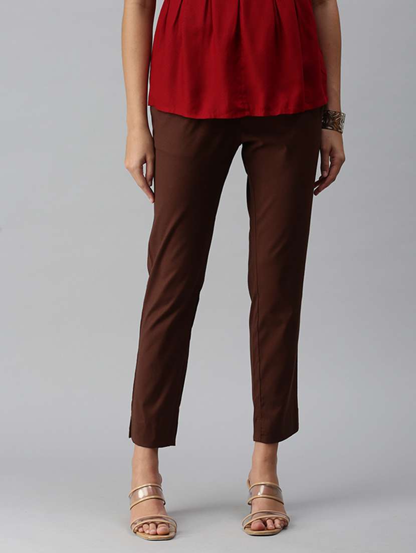 - » women solid pleated cigarette pants