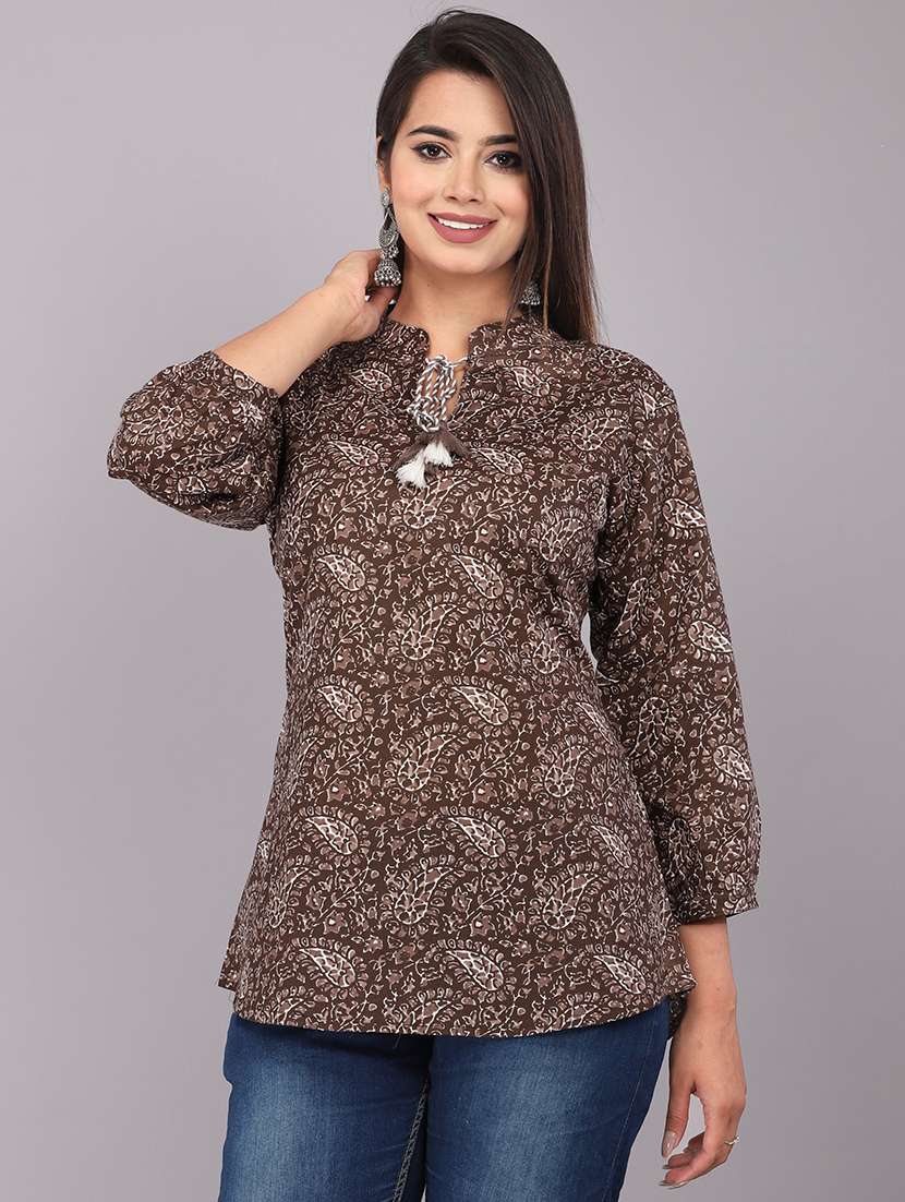 brown cotton straight top
