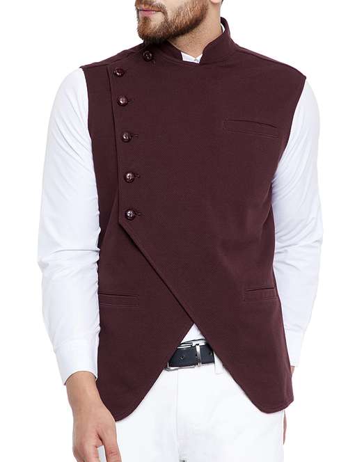 brown cotton nehru jacket