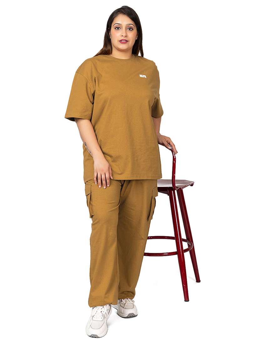 women solid t-shirt and trouser co-ord set
