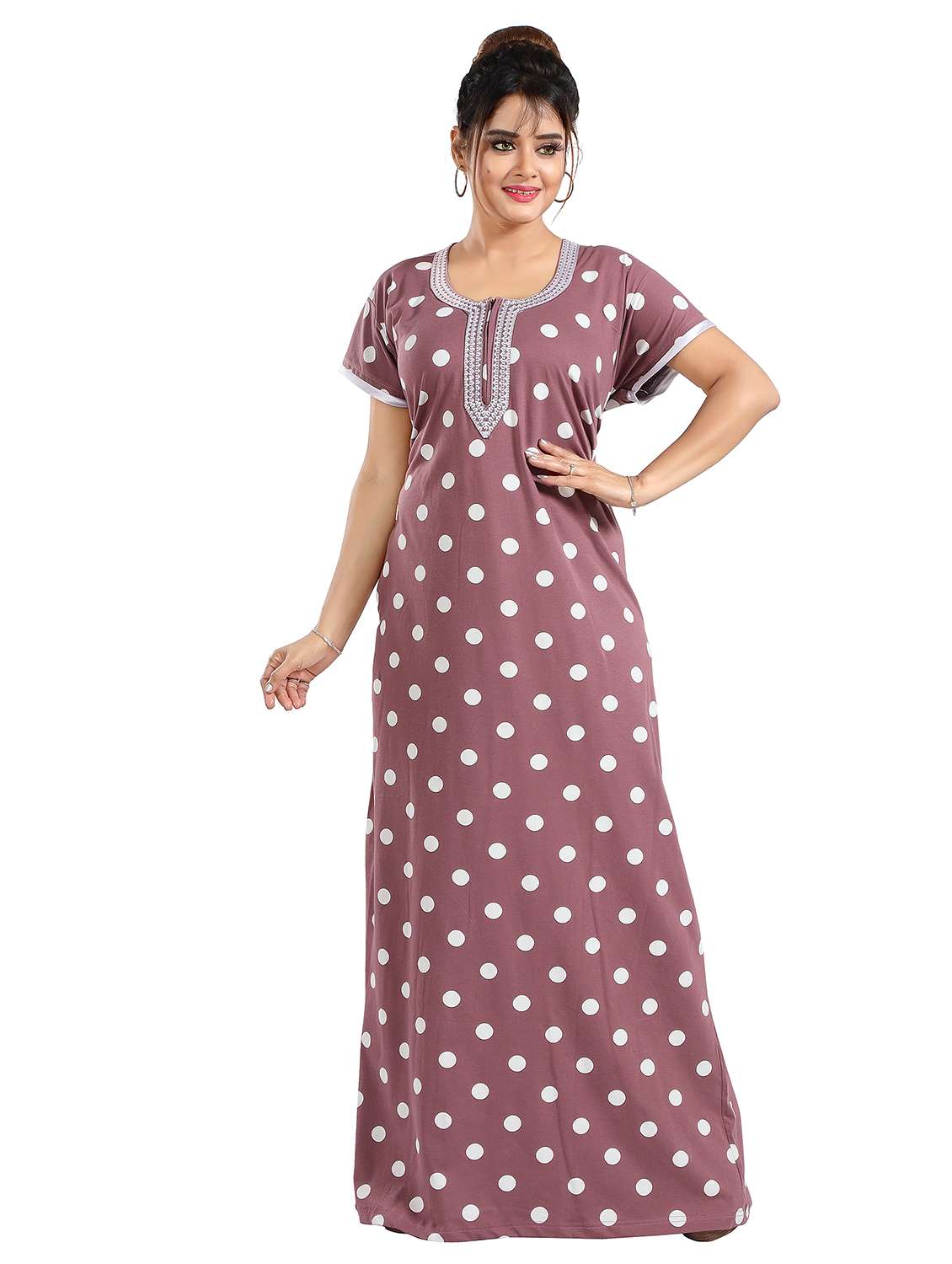 Elevate your nighttime comfort with the LadyVenom Women's CottonSinker Nighty/Night Dress/Gown Printed Maxi. Crafted from premium cottonsinker fabric, this night dress is designed to offer you the perfect blend of softness, style, and comfort. Experience luxurious softness against your skin with the high-quality cottonsinker material. This fabric ensures a gentle and soothing feel, allowing you to relax and unwind after a long day. Featuring a printed maxi design, this night dress exudes elegance and charm. The beautiful prints add a touch of personality and flair to your nighttime attire, making bedtime feel like a fashionable affair. The loose and flowy silhouette of this nighty provides you with unrestricted movement, allowing you to move freely and comfortably as you sleep. Whether you're lounging around the house or getting ready for bed, this night dress offers versatility and ease. With its timeless design, this nighty is suitable for all seasons. From warm summer nights to chilly winter evenings, it provides the perfect combination of comfort and style, ensuring you feel fabulous all year round. Available in a range of sizes to cater to every body type, the LadyVenom Women's CottonSinker Nighty/Night Dress/Gown Printed Maxi ensures a comfortable and flattering fit for all. Treat yourself to ultimate relaxation and sophistication with this must-have nighttime essential.